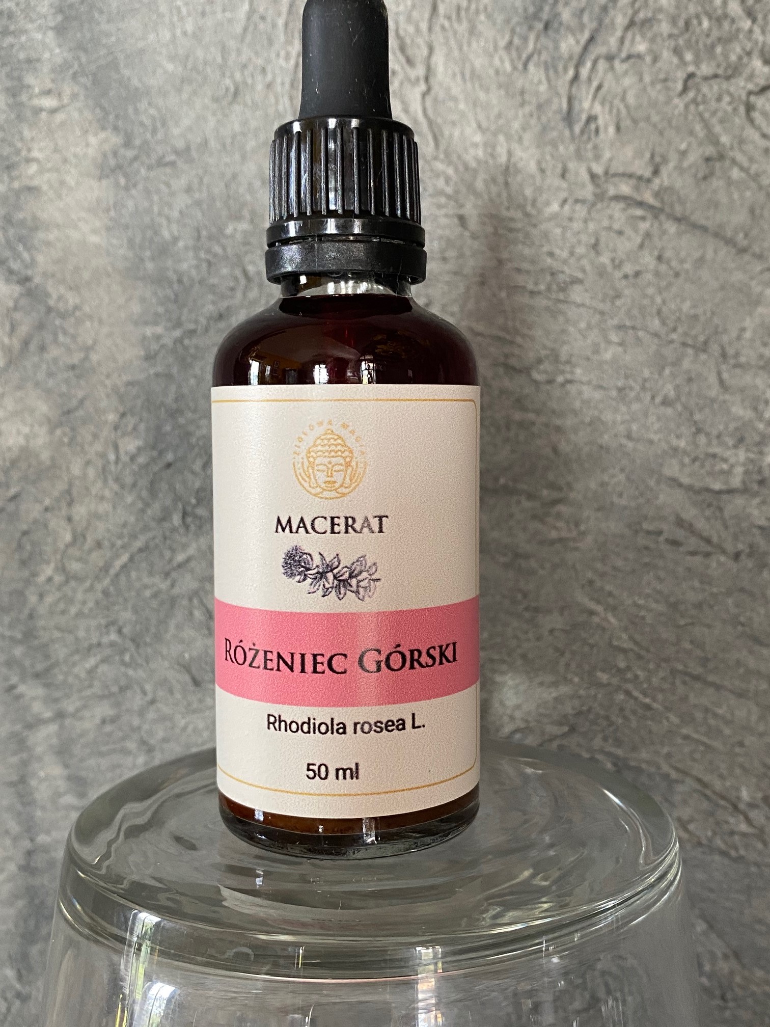 Skład maceratu: korzeń różeńca górskiego, alkohol.